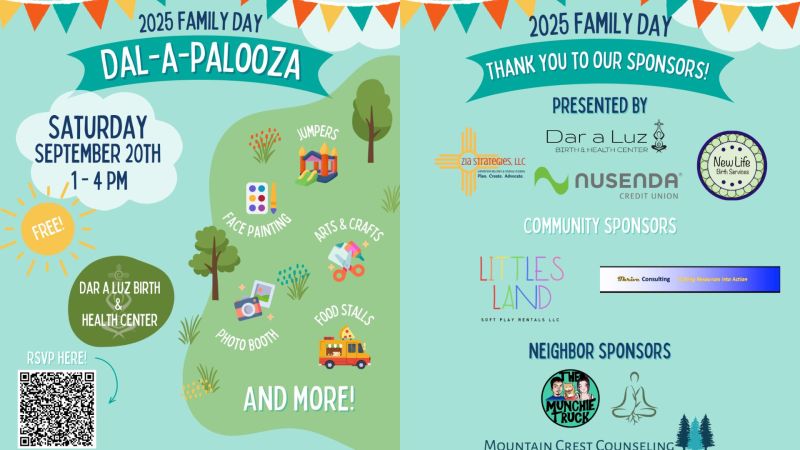 Join us for our 2025 Family Day on Saturday, Sept. 20th from 1–4 PM at Dar a Luz Birth & Health Center! 🌈
